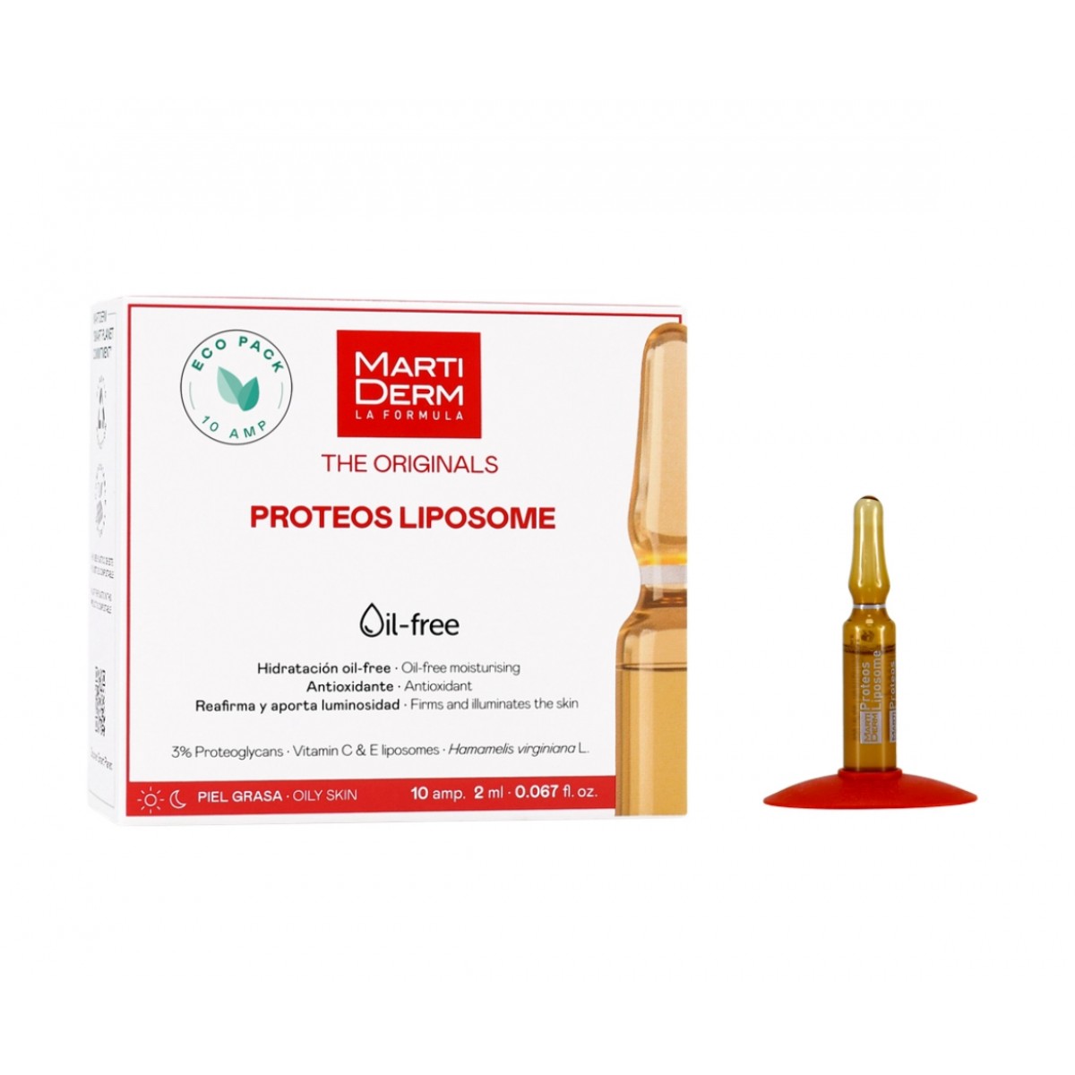 Ампула Proteos Liposome была разработана для жирной и чувствительной кожи, которая нуждается в увлажнении и имеет расширенные поры. Эта легкая сыворотка содержит экстракт гамамелиса, который обладает вяжущим действием для сужения расширенных пор и помогает регулировать выработку кожного сала. Протеогликаны помогают бороться с провисанием кожи и удерживать воду для глубокого увлажнения. С витаминами С и Е для антиоксидантного действия и предотвращения признаков старения. Ранее известна как Martiderm Liposomas.